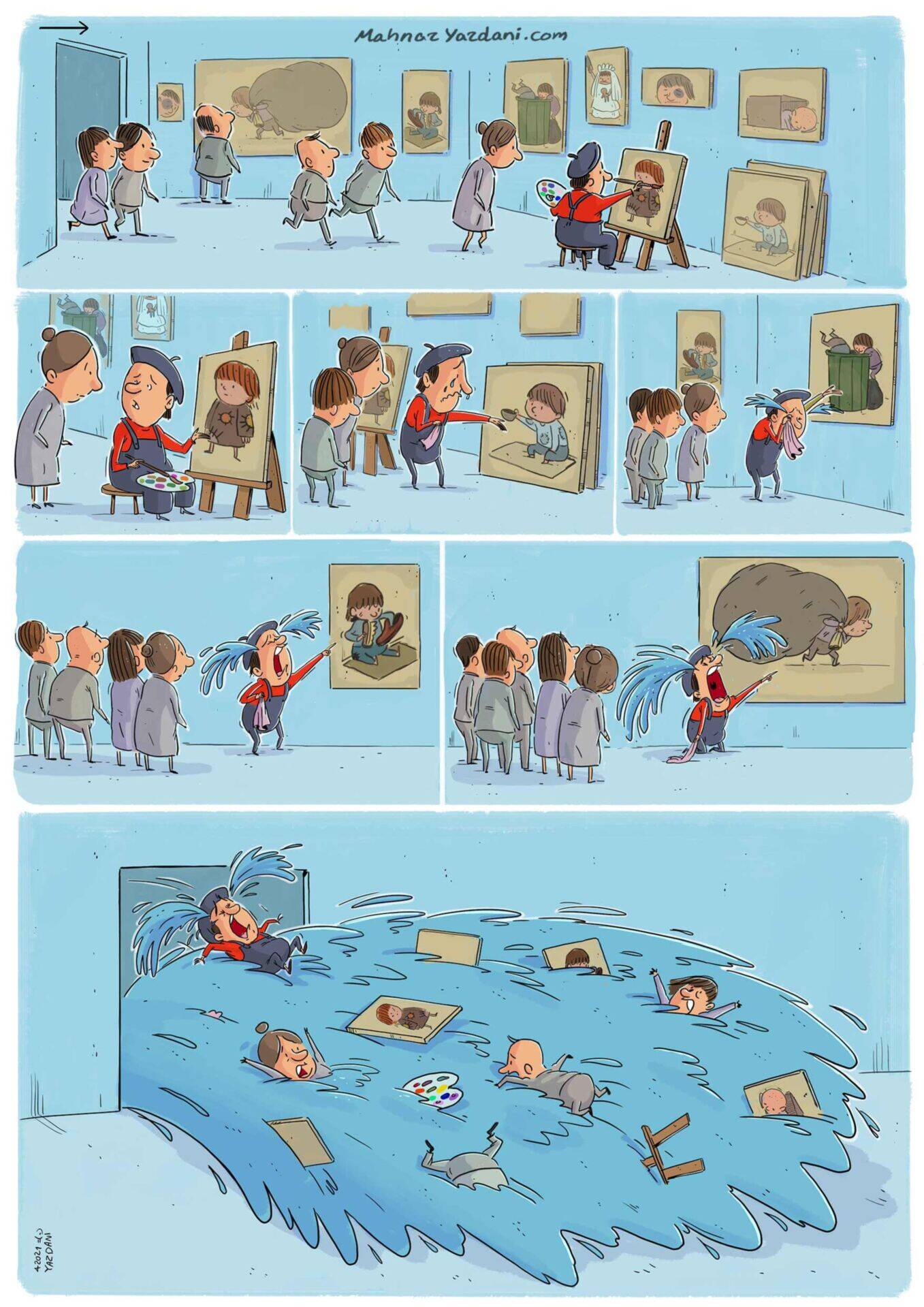 In 2019, a two-week solo exhibition in Oslo, Norway, curated by Firuz Kutel, featured 40 of my cartoons created from 2013 to 2019.